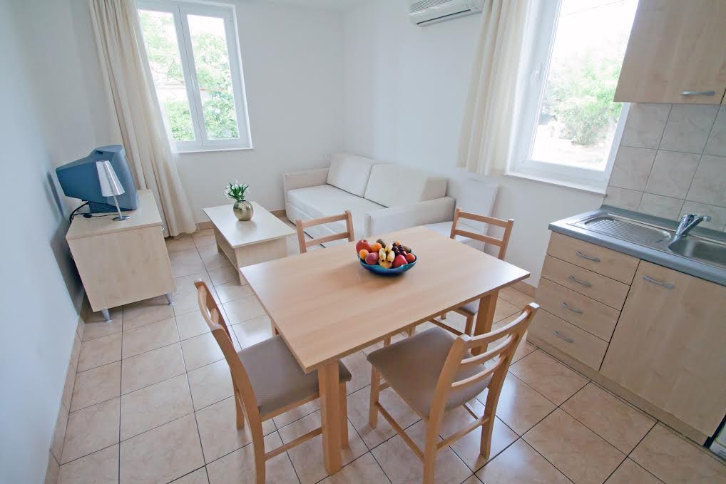 | - dvokrevetna soba - dnevni boravak s krevetom za 2 osobe - kutom za kuhanje (potpuno opremljena kuhinja) i prostorom za ručavanje - kupaonica s wc-om (sušilo za kosu, osnovne higijenske potrepštine) - sat-tv |